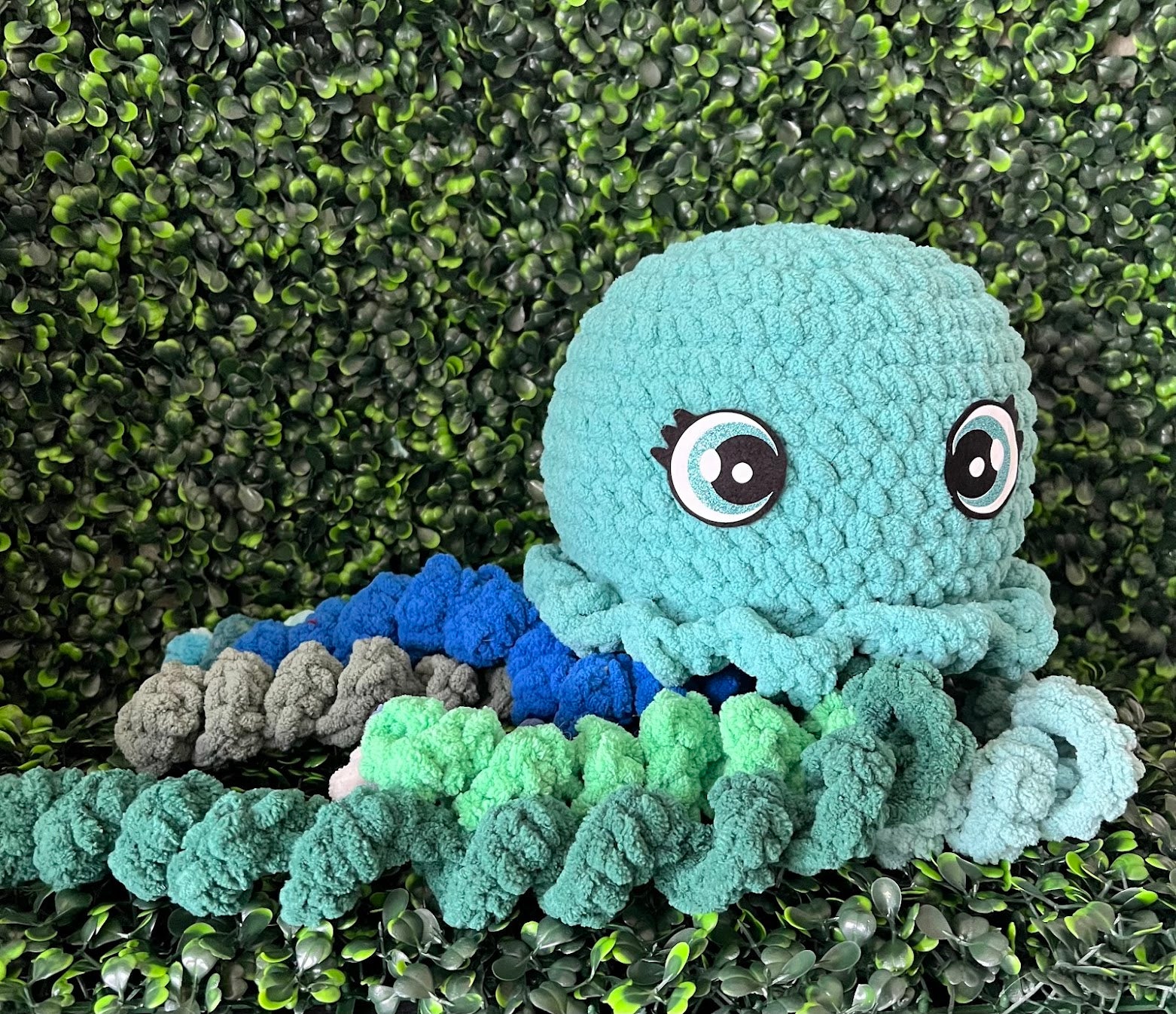 Handmade Crochet Jellyfish made with Bernat Blanket Yarn. This cutie is about 20 inches long from the top of the head to the end of the tentacles. Made with felt eyes that are safe for all ages.